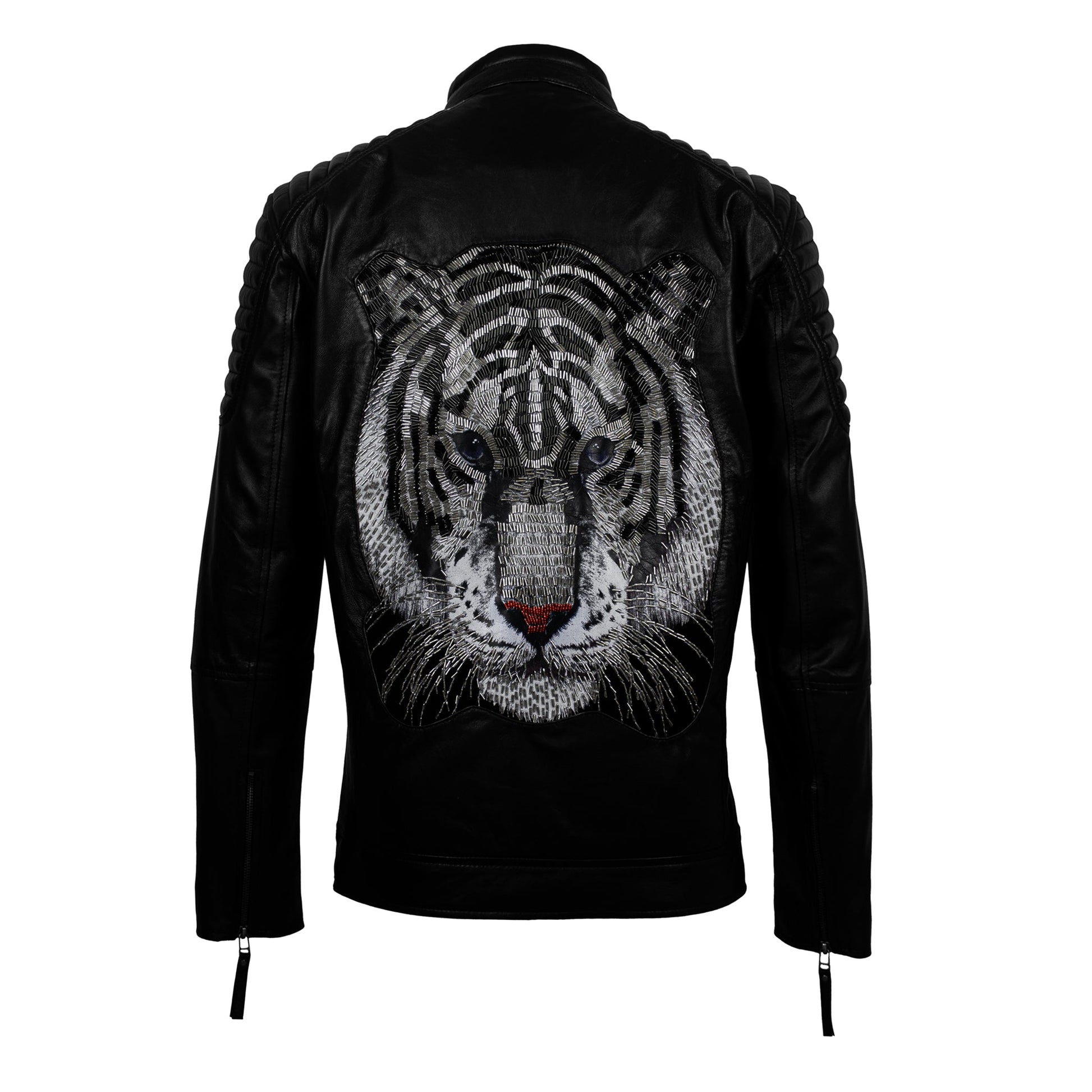 Meanwhile, the structured front is sleek and functional, featuring four secure zippered pockets and a high-neck snap-tab collar. The quilted polyester lining ensures warmth and comfort without adding bulk. Whether you're hitting the fashion scene, stepping into a luxury event, or simply expressing your personal style, the Panthera Luxe Pearl Leather Jacket effortlessly makes a statement.